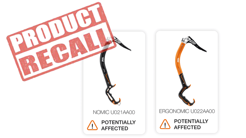 RECALL: NOMIC (U021AA00) and ERGONOMIC (U022AA00) ice axes.