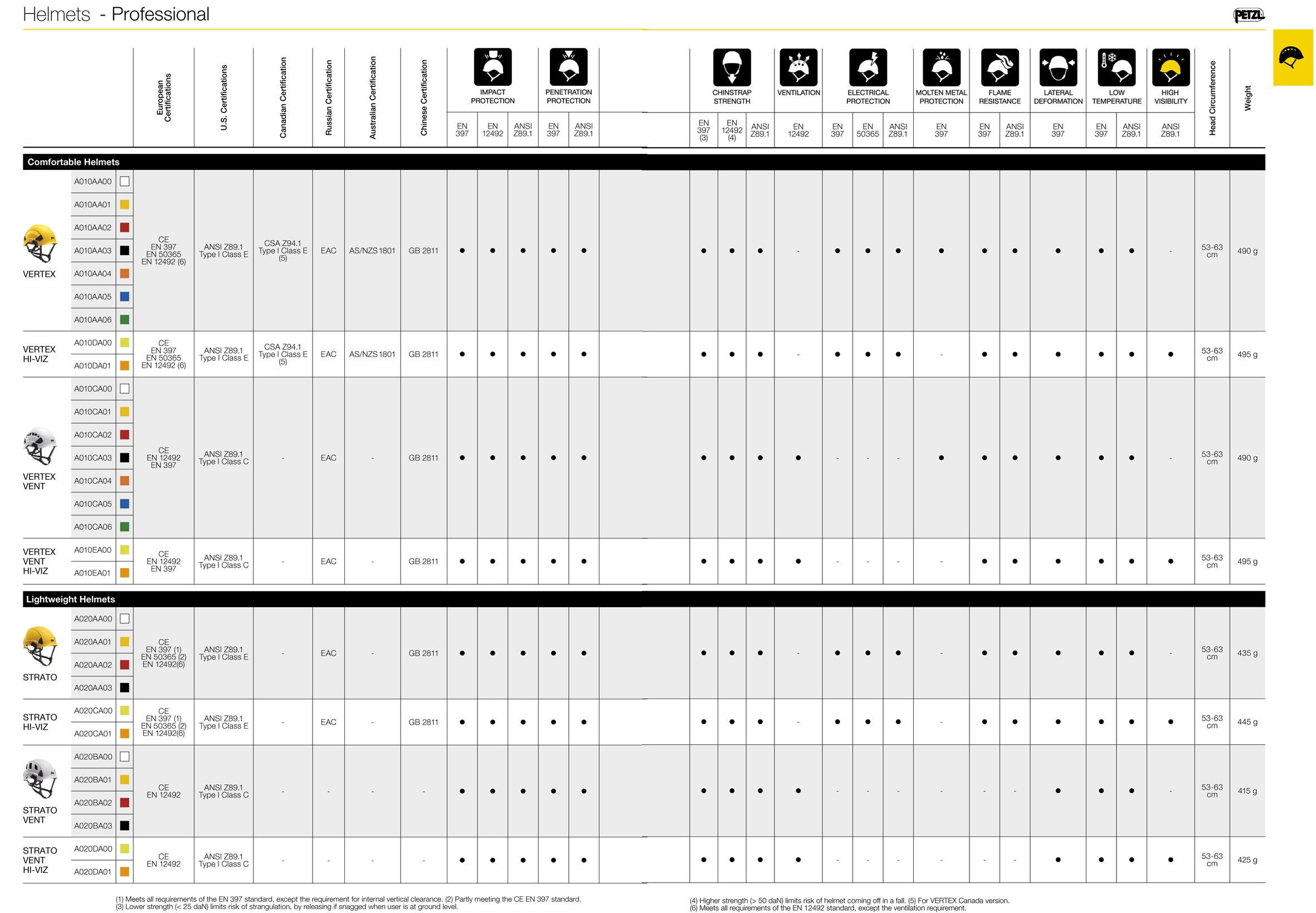 Professional Helmets Size Chart